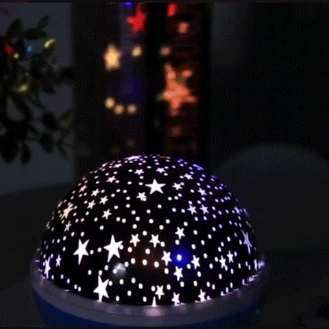 Deze Starry Night Projector Lamp zendt kleurrijke vormen van sterren en halve maantjes uit op uw muren en plafonds, waardoor een kamer verandert in een surrealistisch planetarium. Het zal de fonkelende sterren op het plafond laten zien, dichterbij en bereikbaar.
