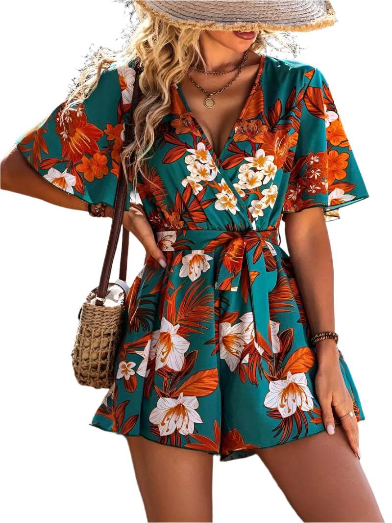 Voel de zomerse vibes met onze nieuwe Tropische Bloem Romper. Dit opvallende kledingstuk is perfect voor elke gelegenheid, van stranduitjes tot casual bijeenkomsten.