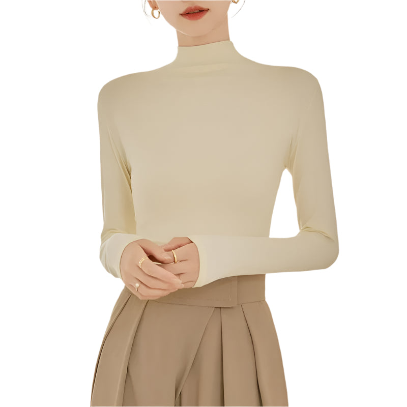 Verfraai je garderobe met dit veelzijdige T-shirt met hoge kraag en lange mouwen voor dames. Het slim-fit model is ontworpen voor comfort en stijl en omhelst je figuur met een flatterend silhouet. De hoge kraag biedt extra warmte en een vleugje verfijning, waardoor het de perfecte laagjesstof is voor elk seizoen.