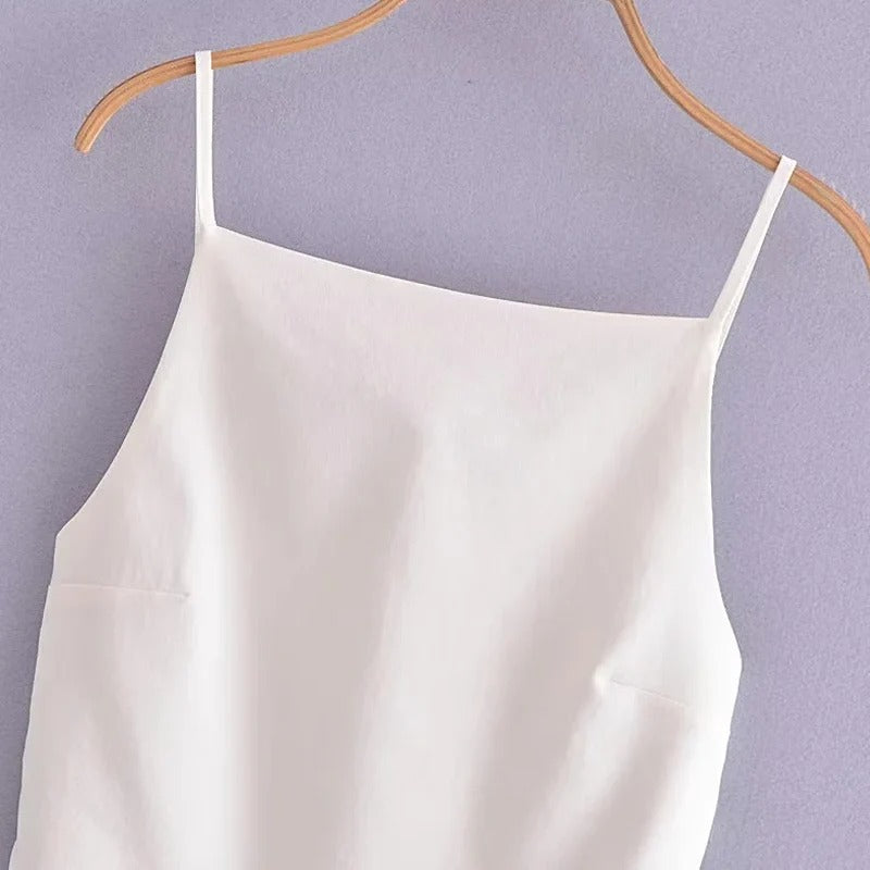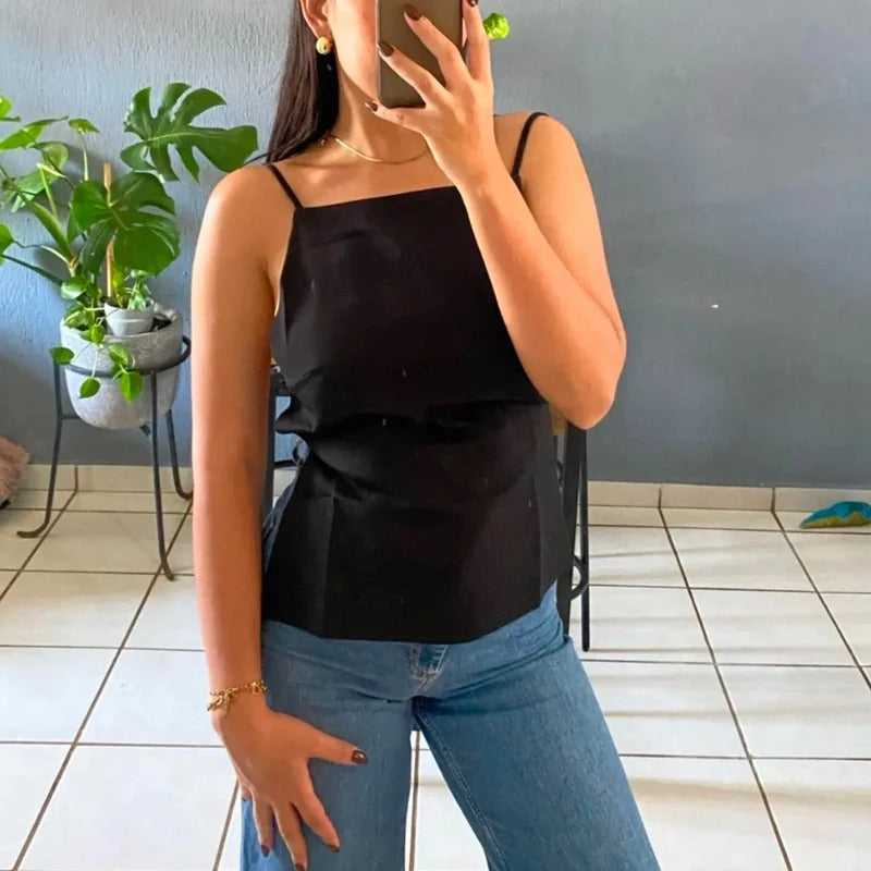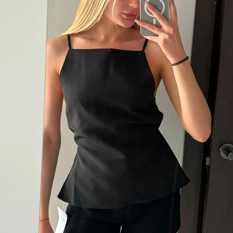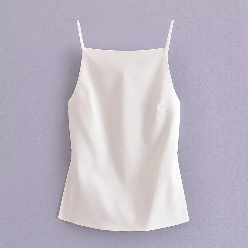 Deze casual top heeft een vierkante halslijn en een open rug voor een strakke, moderne silhouet. Hij is gemaakt van zachte, ademende stof en heeft een slanke pasvorm die je zowel chic als casual kunt dragen.