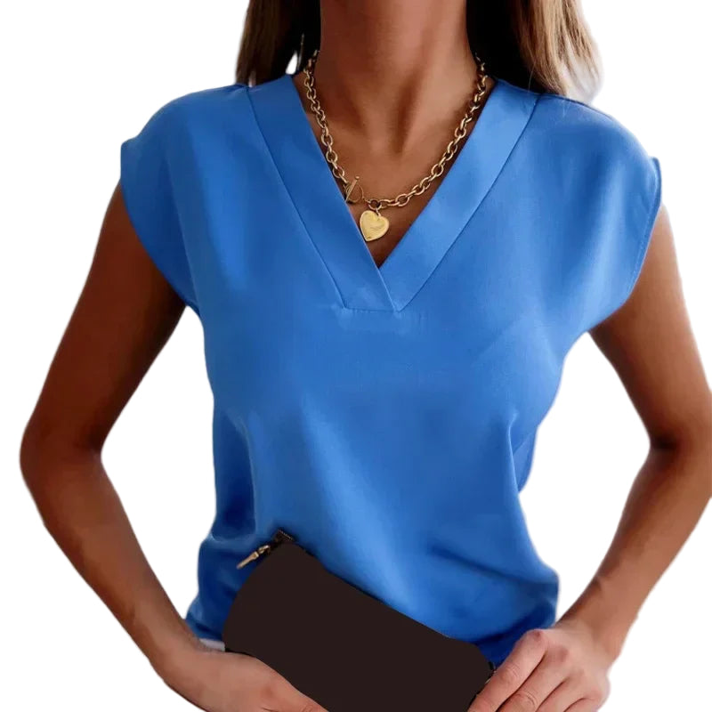 De top heeft een tijdloos ontwerp dat zich aanpast aan verschillende modetrends. De V-hals geeft een verfijnde uitstraling, terwijl het mouwloze ontwerp perfect is voor warmere dagen. Dit kledingstuk is een must-have voor elke modebewuste vrouw.