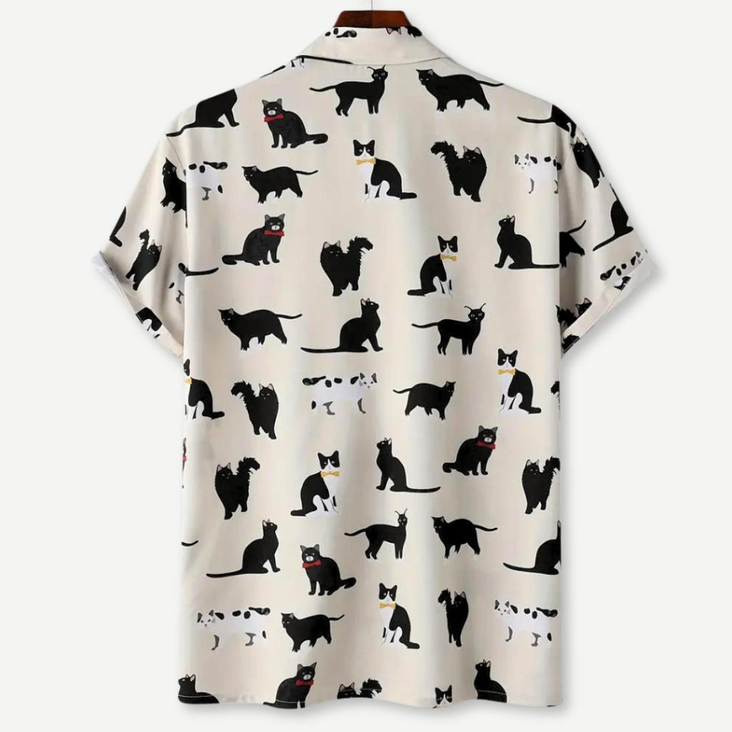 Ontdek ons Heren Overhemd Met Kattenprint, ontworpen voor diegenen die houden van een comfortabele en speelse stijl. Dit overhemd biedt een perfecte combinatie van ademend vermogen en een zachte aanraking op de huid, ideaal voor warme klimaten of een zonnige dag.