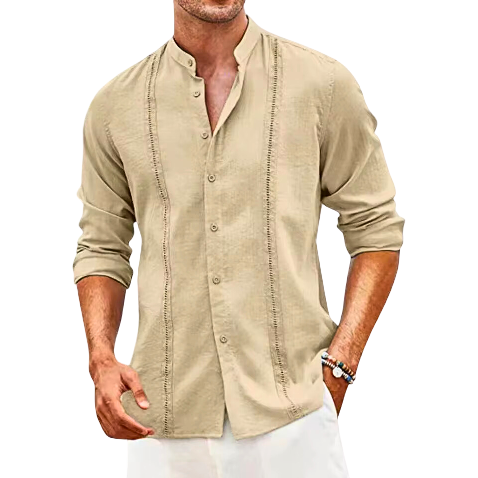 Met een moderne mandarijnkraag en een getailleerd design, is dit overhemd ideaal voor zowel casual als formele gelegenheden. De ademende stof zorgt ervoor dat je je altijd fris voelt, terwijl de veelzijdige knoopsluiting verschillende stylingmogelijkheden biedt.