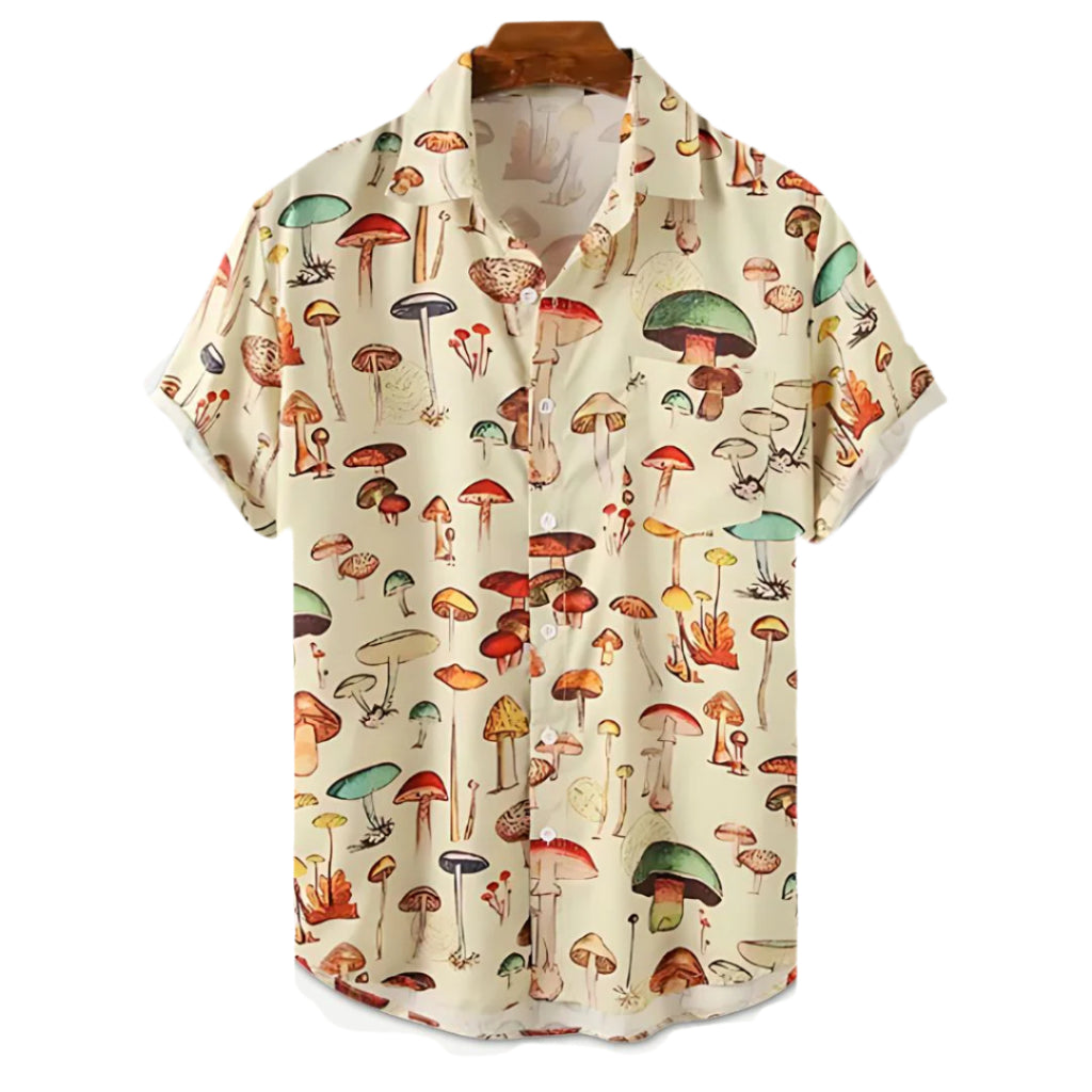 Dit overhemd heeft een unieke paddenstoelenmozaïekprint die een speelse touch toevoegt aan je outfit. Het is ideaal voor casual gelegenheden en kan gemakkelijk worden gecombineerd met verschillende onderstukken, zoals shorts of jeans. De lichte stof zorgt ervoor dat je het ook op warme dagen kunt dragen zonder je ongemakkelijk te voelen.