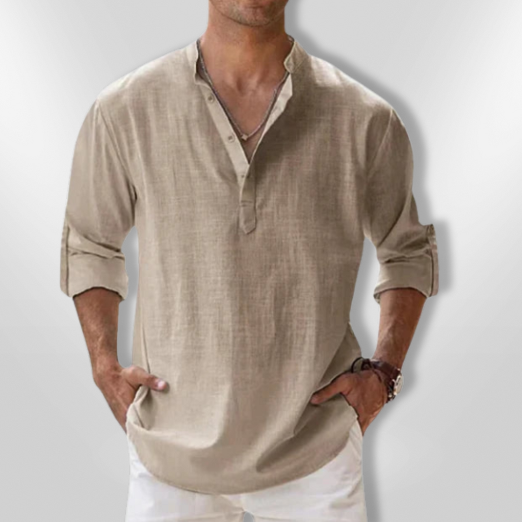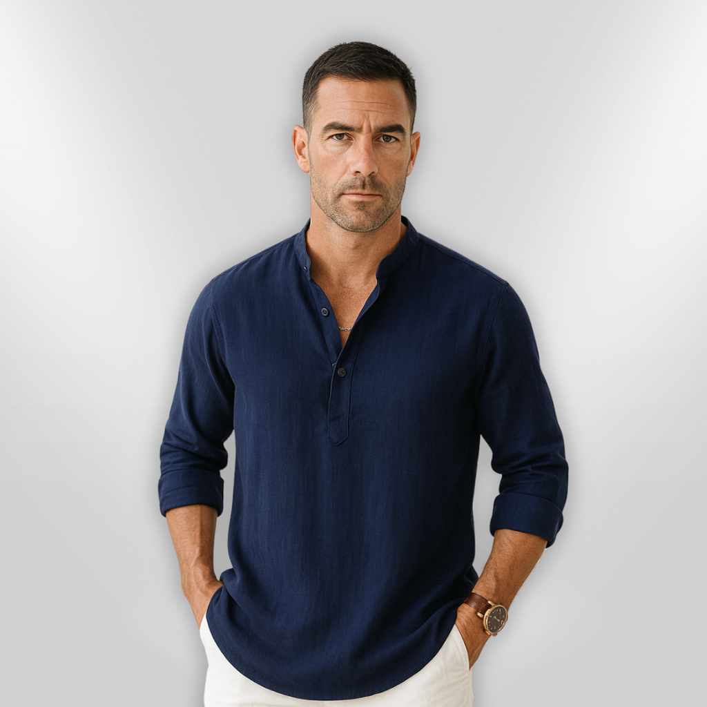 Met een elegant tunisch col en opgerolde mouwen, voegt deze polo een moderne en verfijnde touch toe aan je outfit. Het ontwerp is perfect voor zowel casual als semi-formele gelegenheden.