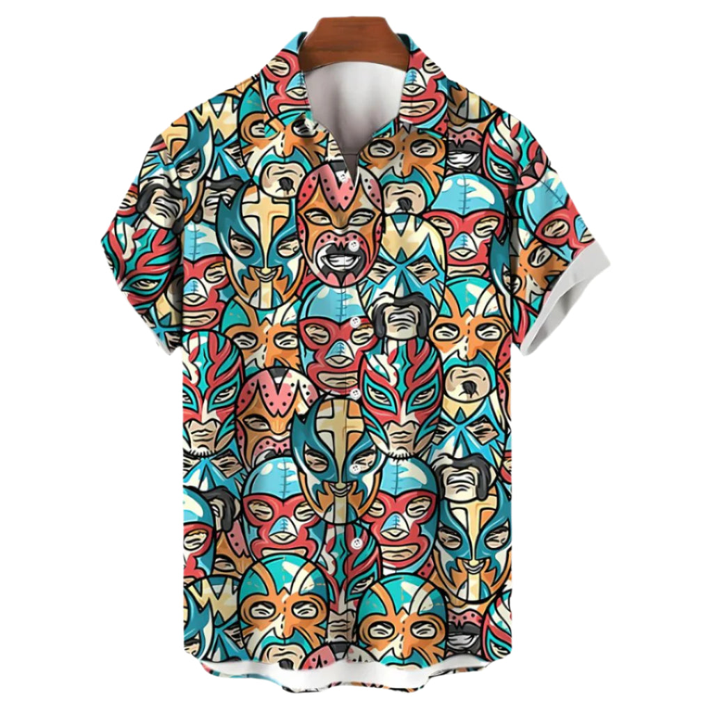 Met een ontspannen pasvorm biedt dit T-shirt vrijheid van beweging, waardoor je je de hele dag comfortabel voelt. De levendige luchador prints voegen een speelse en feestelijke uitstraling toe aan je outfit.