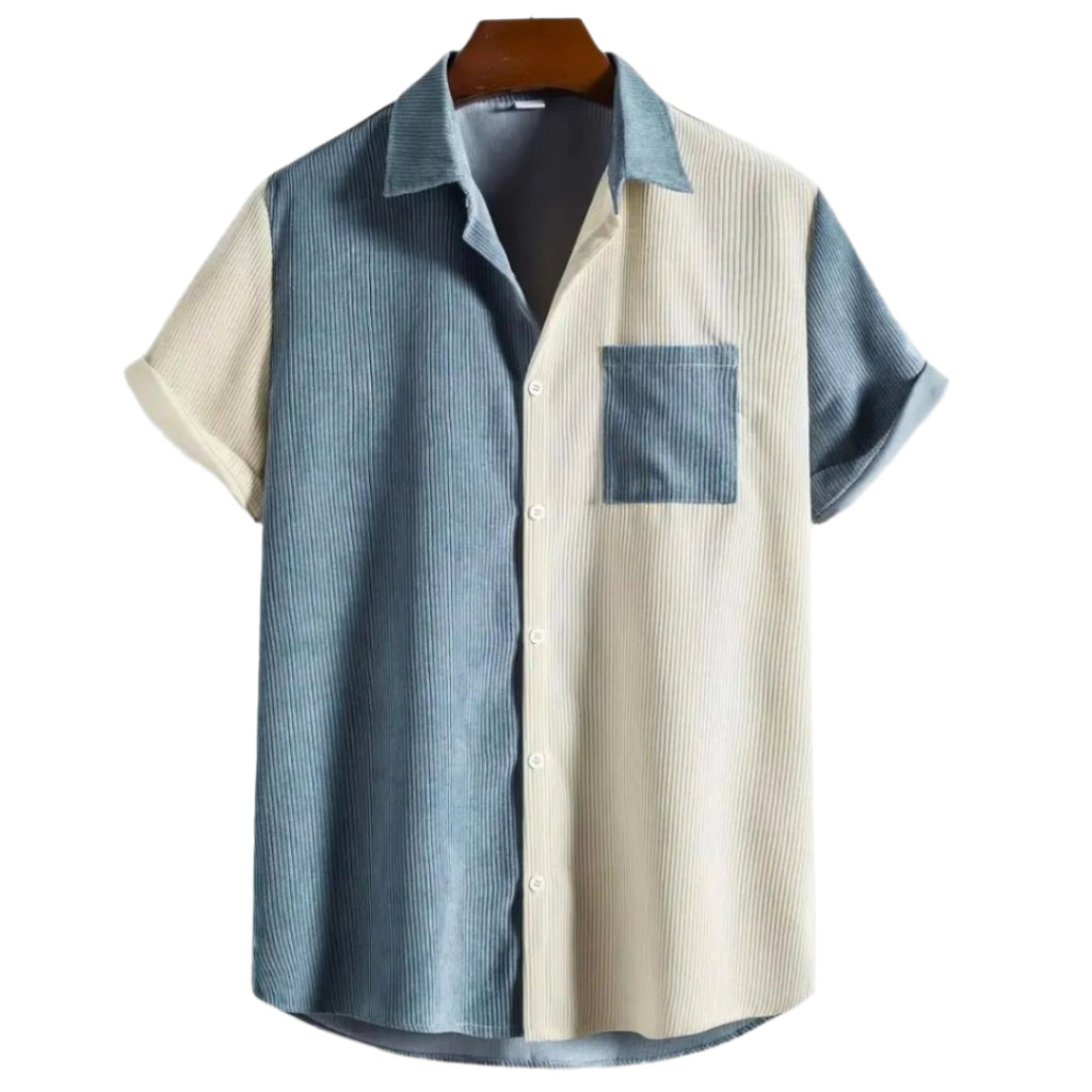 Heren Tweekleurige Geribbelde Shirt Casual