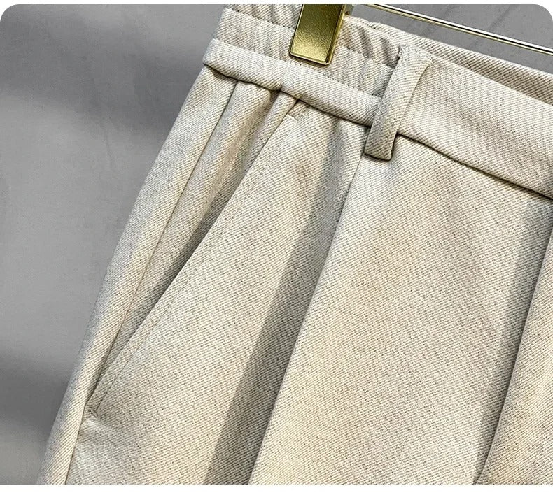 Deze dikke herenbroek is gemaakt van wollen stof voor een gestructureerde, hoogwaardige look met een zachte feel. De slanke, rechte snit zorgt voor een moderne uitstraling met behoud van de tijdloze elegantie van traditionele zakelijke kleding.