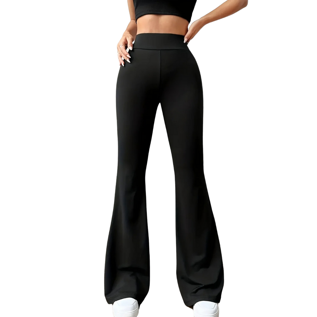 Deze flared broek voor dames heeft een hoge taille en een slim-fit bovenstuk dat overgaat in een elegante wijde pijp, voor een chique en langgerekt silhouet. De lichtgewicht, ademende stof zorgt voor een strakke look die ideaal is voor zowel casual als chique gelegenheden.