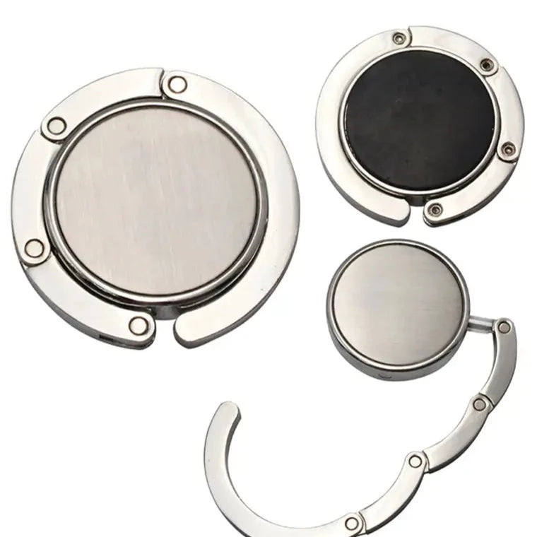 Gemaakt van duurzaam zinklegering, biedt deze tas haak zowel elegantie als functionaliteit. Het antislip ontwerp zorgt voor een stevige grip, zodat je tas blijft hangen en beschermd blijft. Met een compacte diameter van ongeveer 45 mm wanneer opgevouwen, glijdt het moeiteloos in je tas en staat het klaar om onmisbare hulp te bieden wanneer je het nodig hebt.