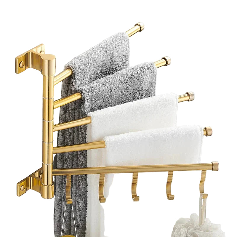 Met zijn slimme draaibare armen biedt dit handdoekrek optimale luchtcirculatie en houdt het handdoeken georganiseerd. Perfect voor compacte badkamers, dit rek is zowel praktisch als esthetisch aantrekkelijk.